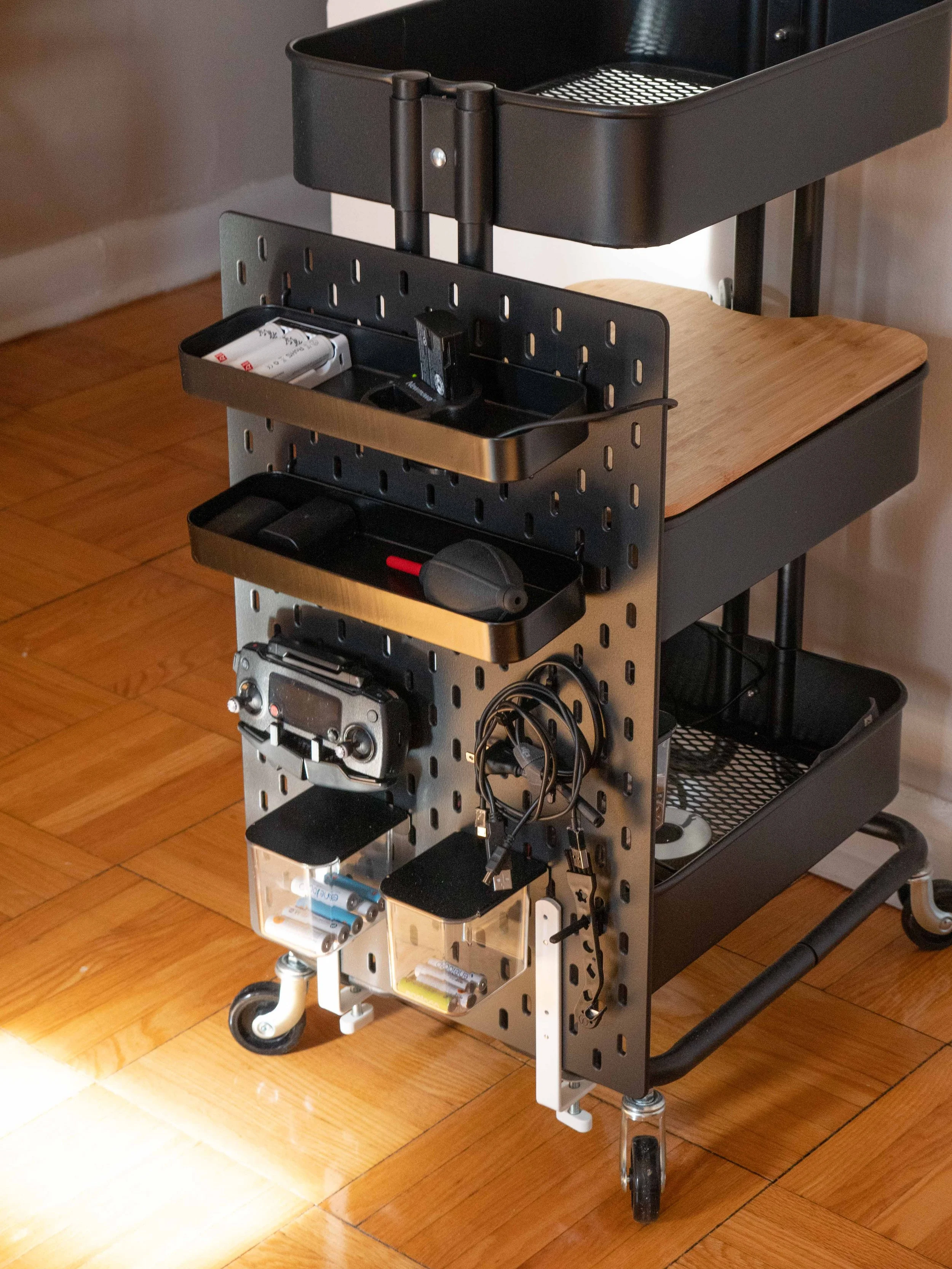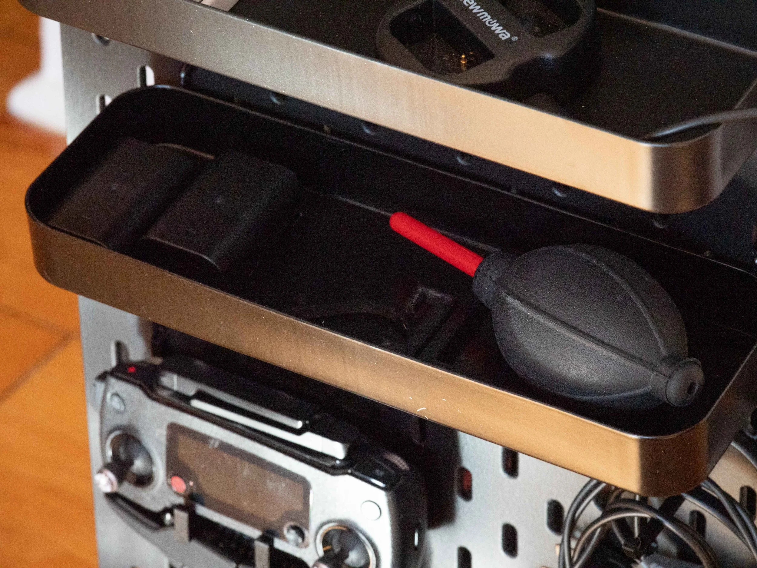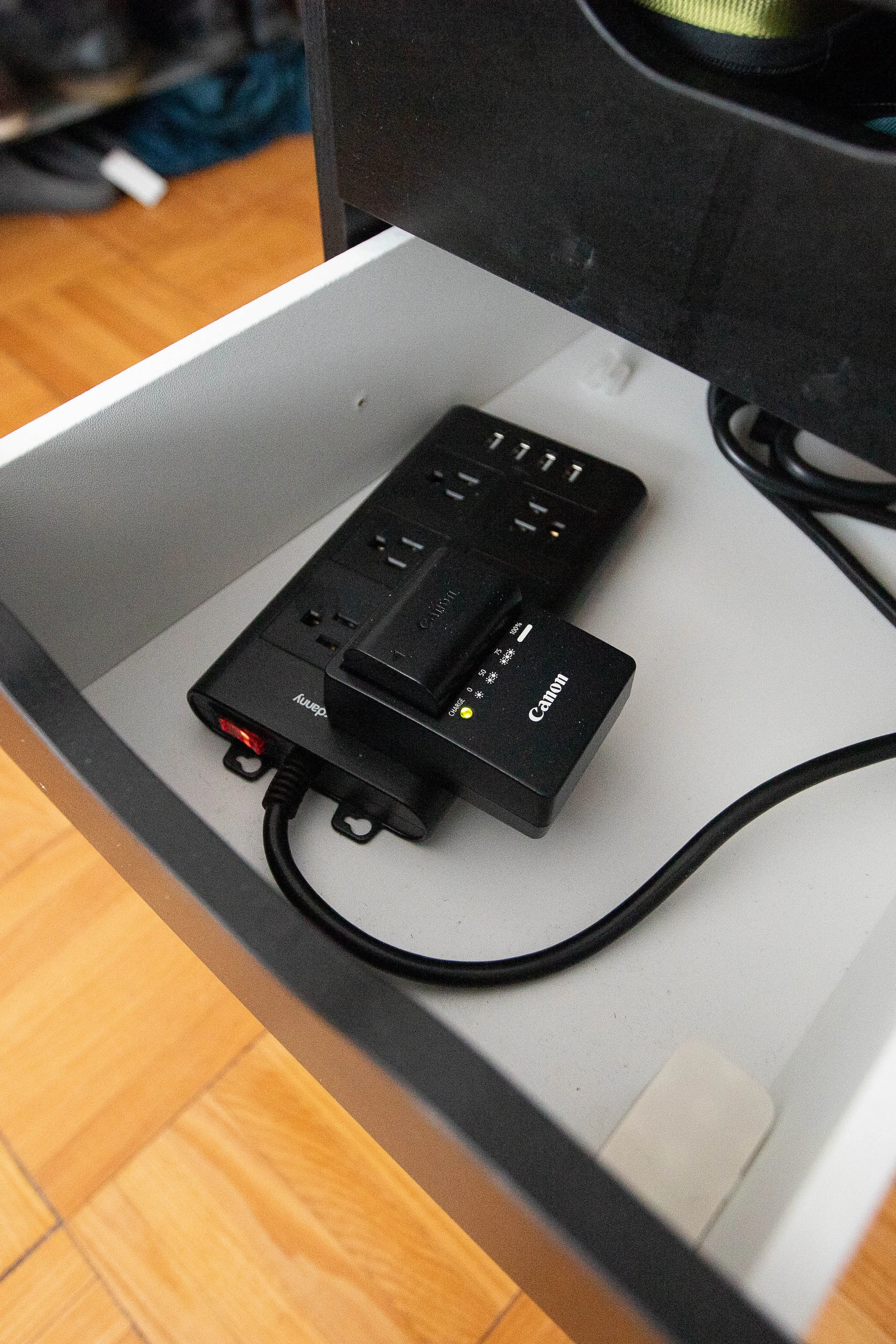 I created my first charging station for my camera batteries and a 3D-printed model of an organizer tray that fits in the drawer.